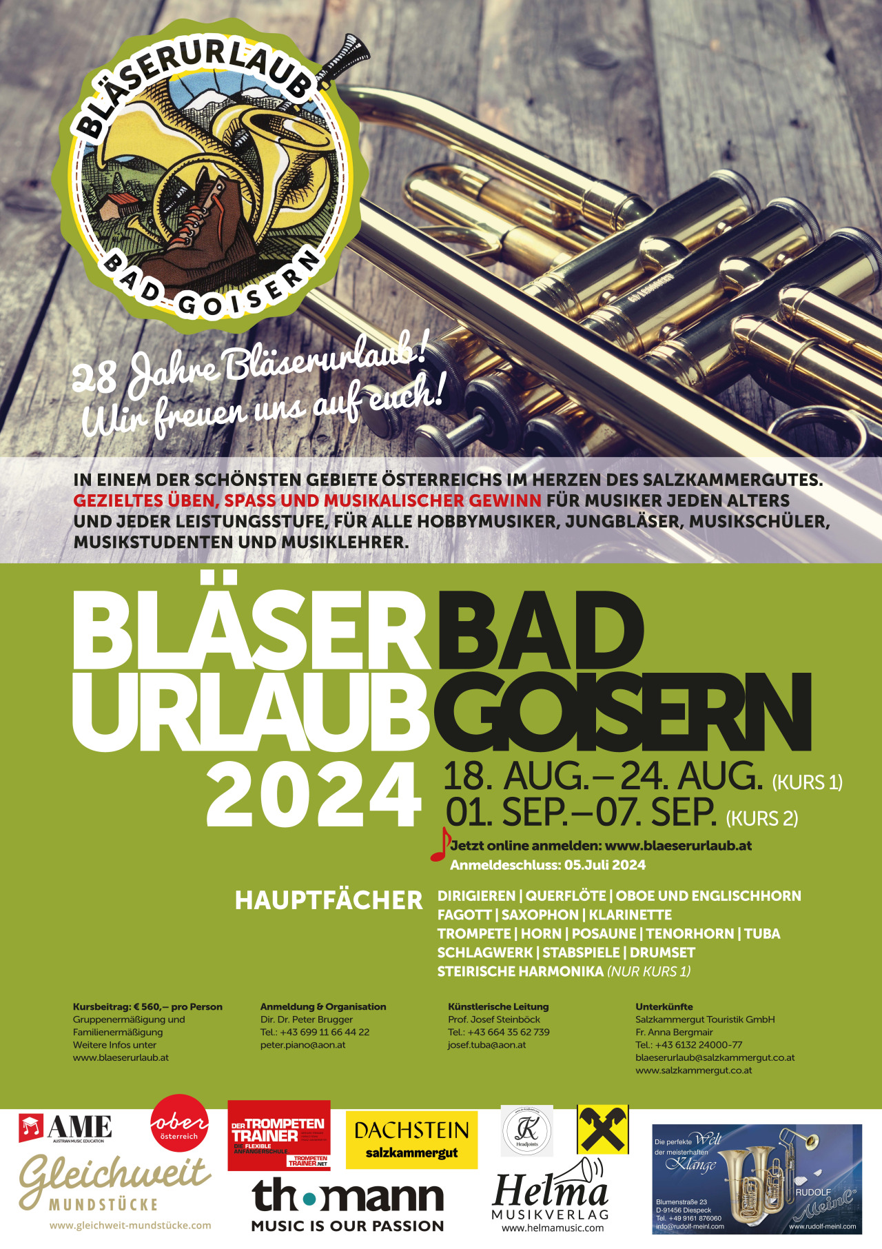 Der Bläserurlaub 2025 wird mit zwei Kursen stattfinden.